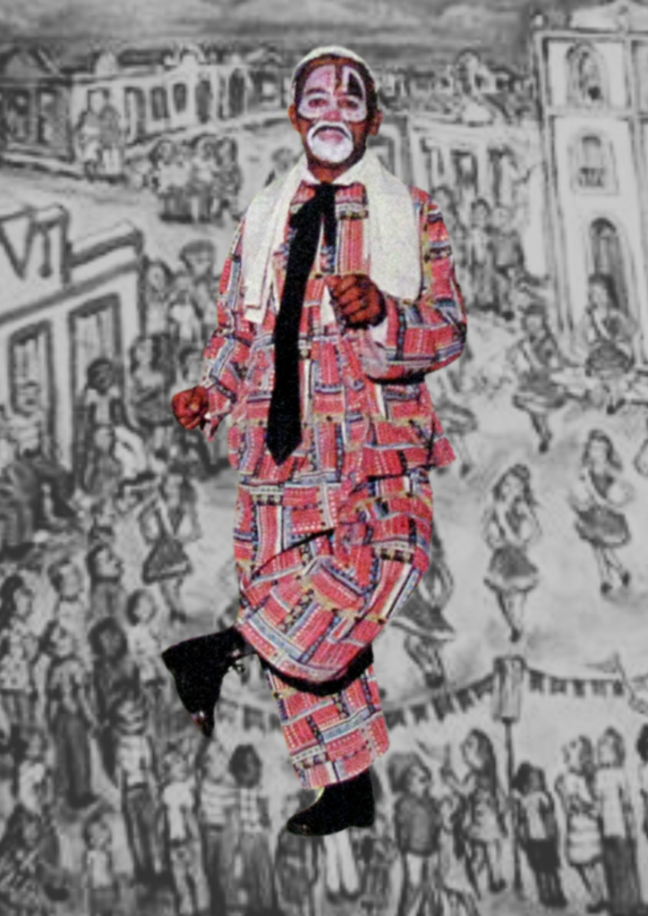 "Personagens icônicos do folclore( tradição popular) e do picadeiro, o Velho do Pastoril e o Palhaço do Circo representam a irreverência e a crítica social na cultura popular brasileira." Por Cristina Diôgo